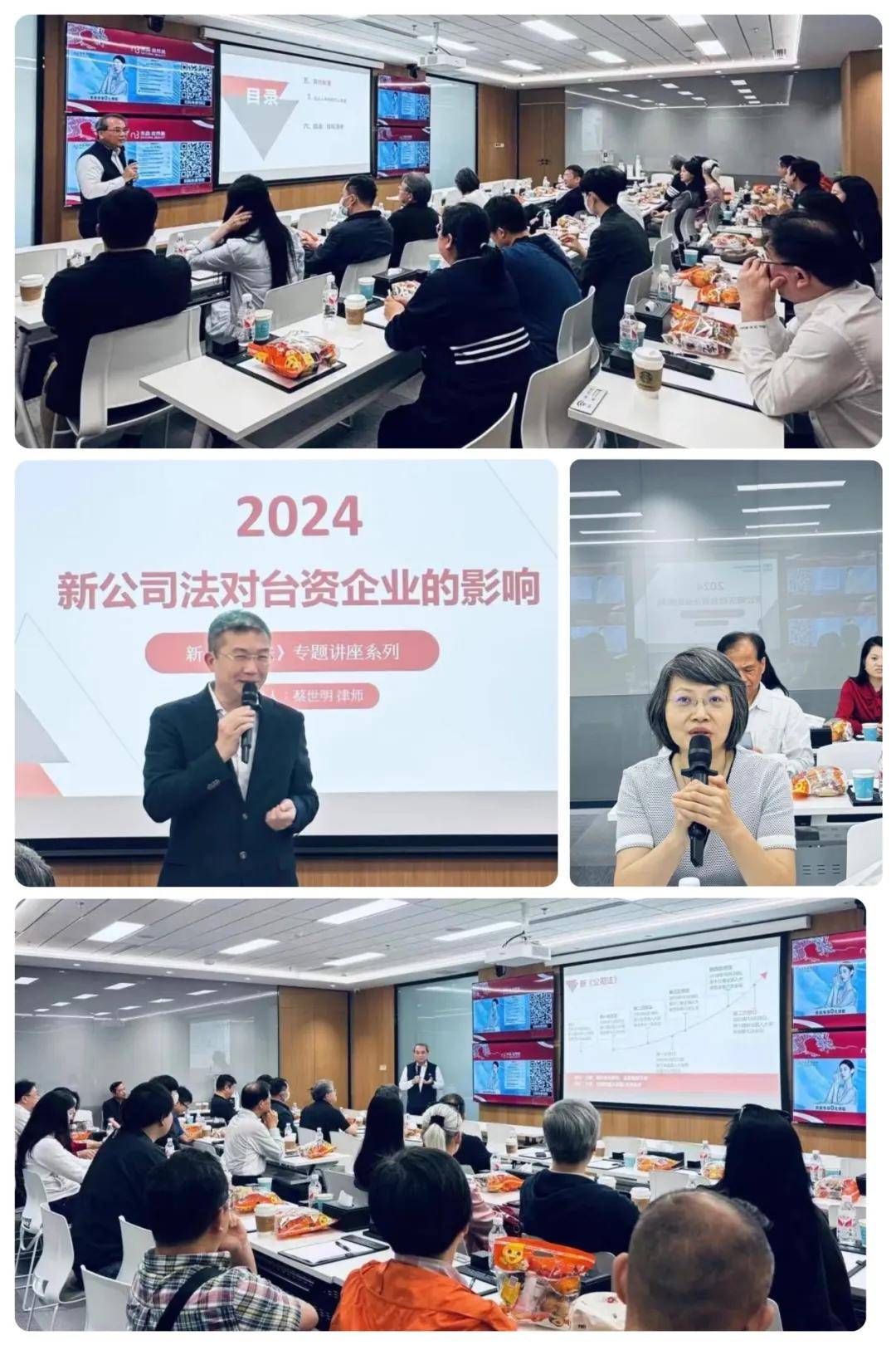 市台协静安区工委会举办了“2024新公司法对台资企业的影响”专题讲座,区台办主任王立萍,市台协常务副会长、静安工委会主委杨明潭及静工委会员企业近30家参加活动。讲座的互动环节也是结合实际案例,给予现场提问者有效建议。此次专题讲座有利于帮助企业更好地理解新《公司法》的精髓和要点,合法合规顺利开展经营活动,适应更加法治化的营商环境。