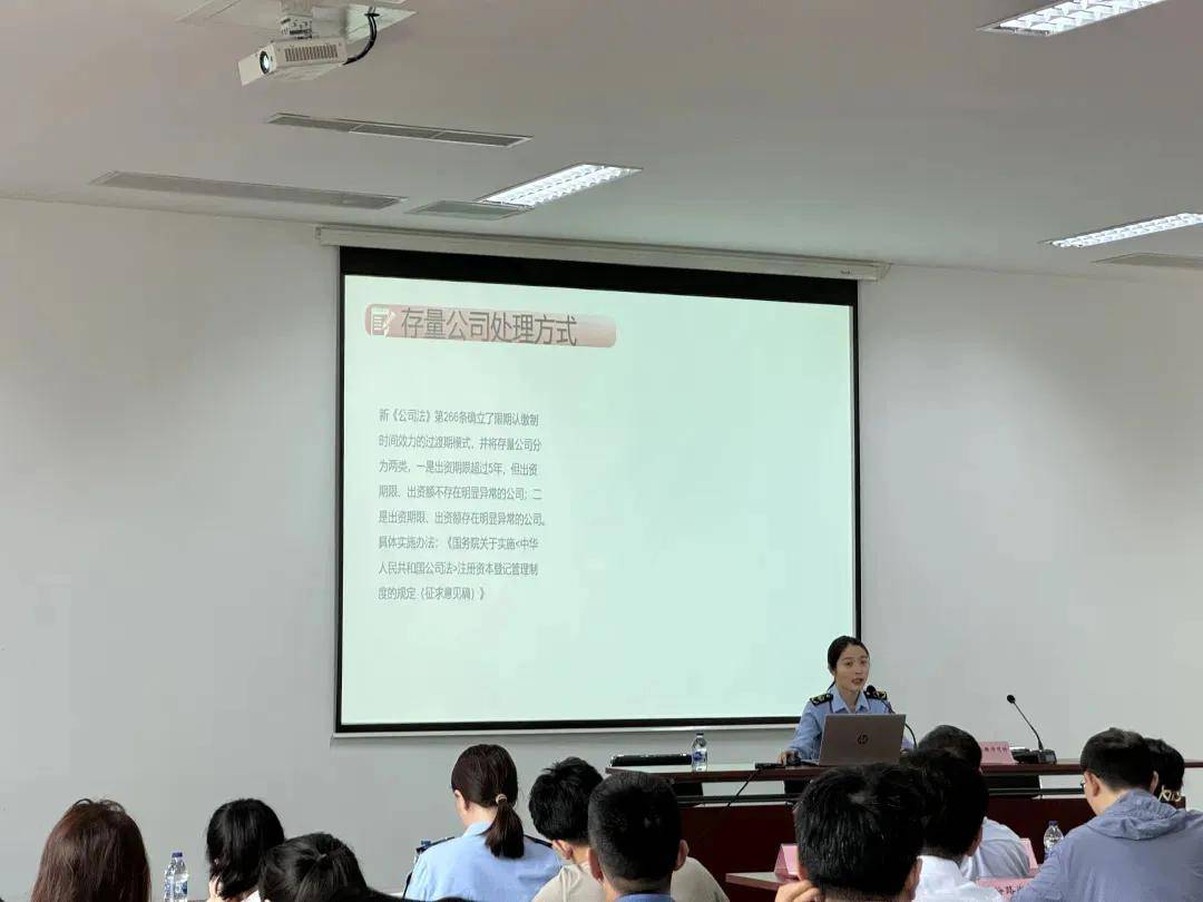 区市场监管局以“新《公司法》背景下公司登记的热点问题”为主题,围绕有限责任公司资本的限期认缴制、公司组织机构、企业名称“十问十答”三方面重点内容,对新《公司法》实施后公司登记管理制度主要变化、注册资本登记管理制度及过渡期问题等进行了全面系统讲解,为帮助各单位系统学习新《公司法》最新规定和核心内容,做好新《公司法》的理解与适用提供指导。